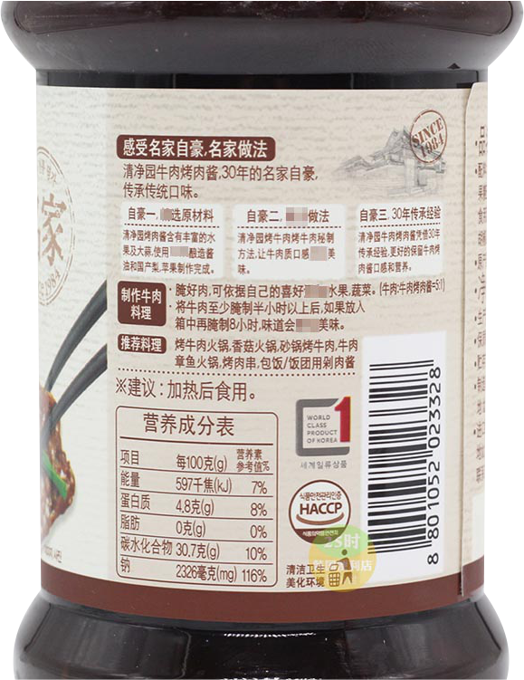 1 bottle of Korean imported Clean Garden Parent Beef Grilled Meat Sauce Dip 840g Korean-style Barbecue Sauce Steak Sauce