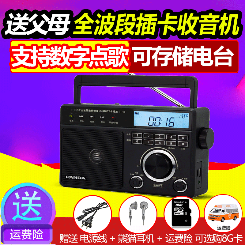 PANDA Panda T-19 radio Elderly full band Desktop FM Stereo FM Semiconductor Broadcast Card Elderly Card Play a vintage old nostalgic big knob Digital on demand