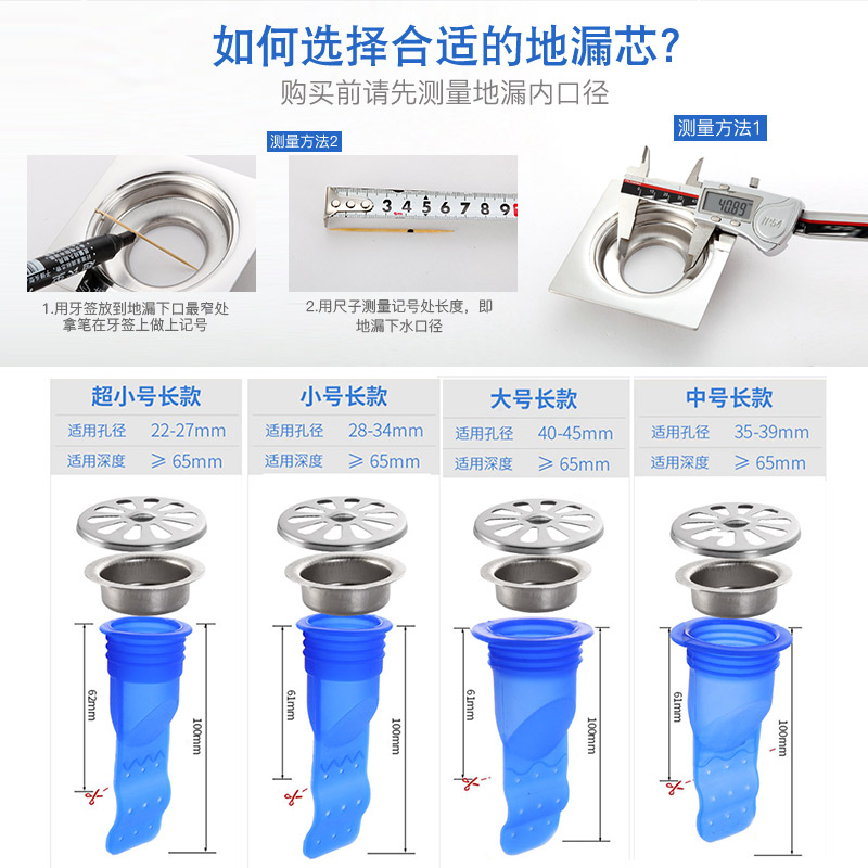 Floor drain deodorant silicone core dressing room sewer round stainless steel bathroom all copper washing machine large cover core