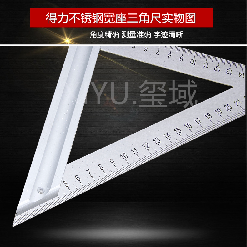 Deli stainless steel triangle ruler 45 degrees 90 degrees woodworking thickened steel ruler Right angle ruler Angle ruler triangle ruler