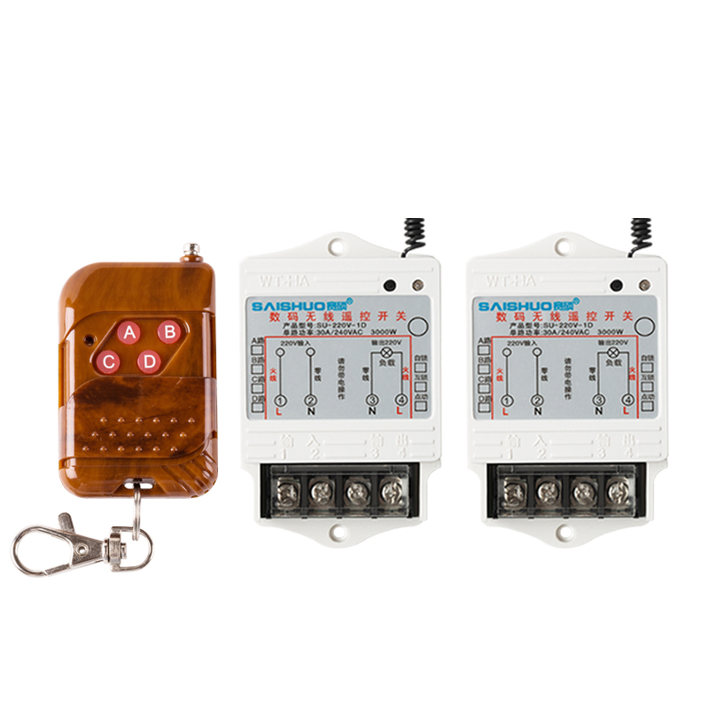 Racing Master Wireless Remote Control Switch 220V One Drag 2 Way 3000W High Power Water Pump Controller Peach Wood 4 Key