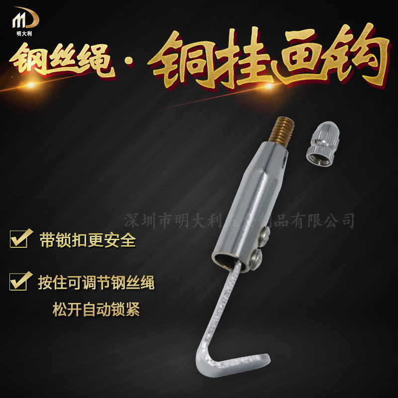 Wire rope hanging painting hook Exhibition hook Painting exhibition hook thickened full copper belt self-locking hanging painting hook Painting exhibition hanging painting device