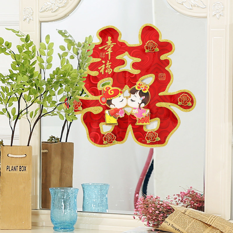 Wedding supplies wedding wedding wedding wedding room layout new house decoration creative large door happy double happy sticker festive