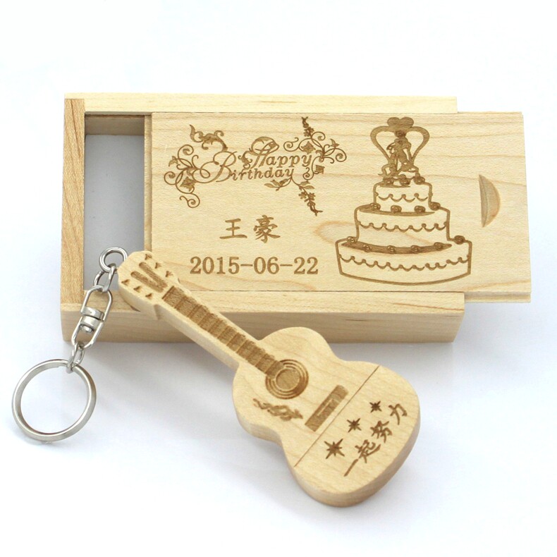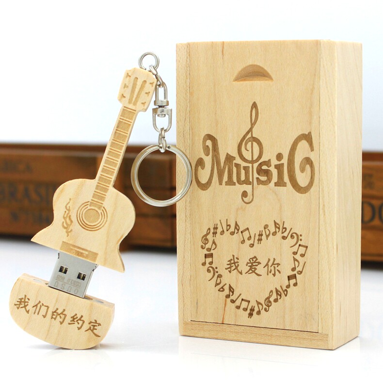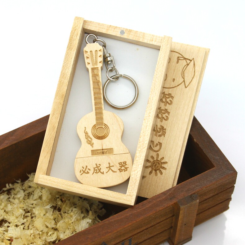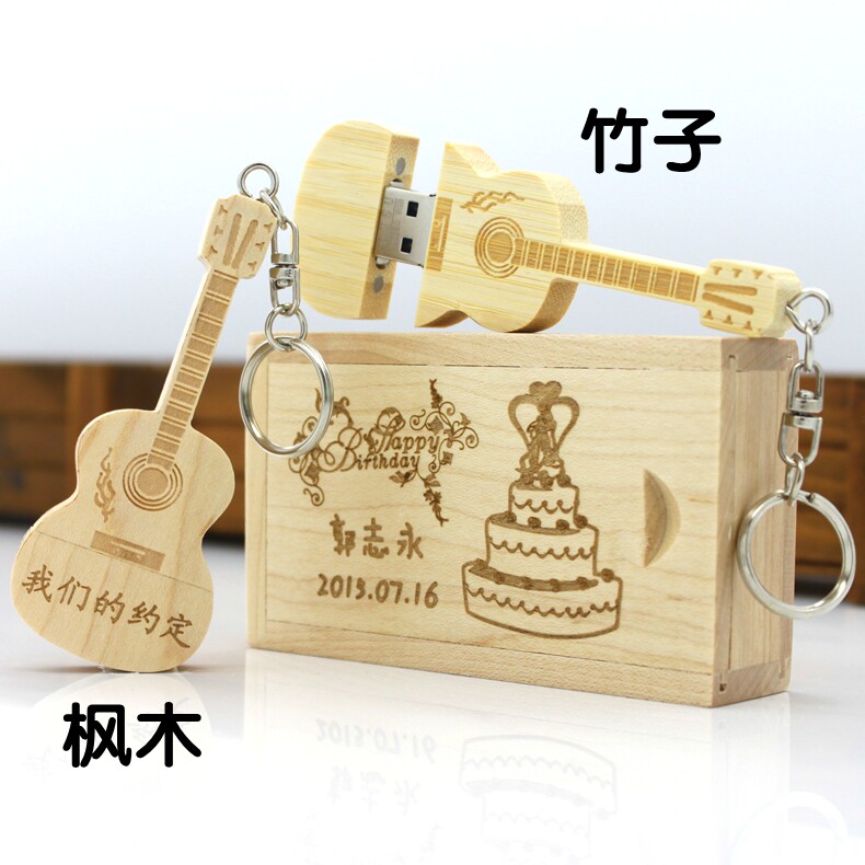 Solid wood bamboo guitar U disk 32g high speed USB3 0 bamboo wood guitar set birthday personalized custom wedding company event promotional gifts USB flash drive logo custom engraving