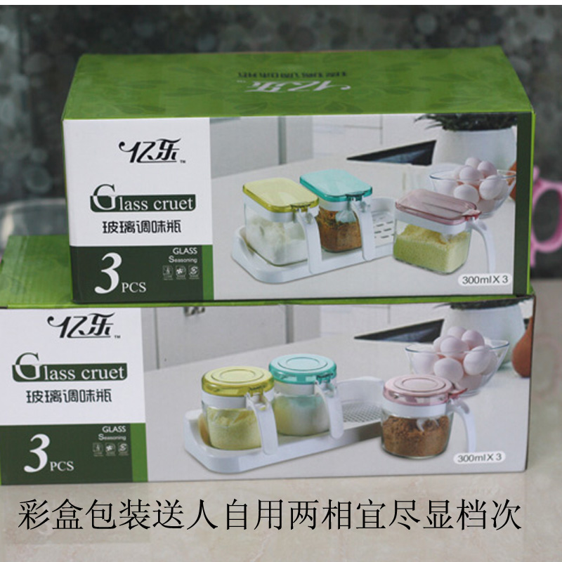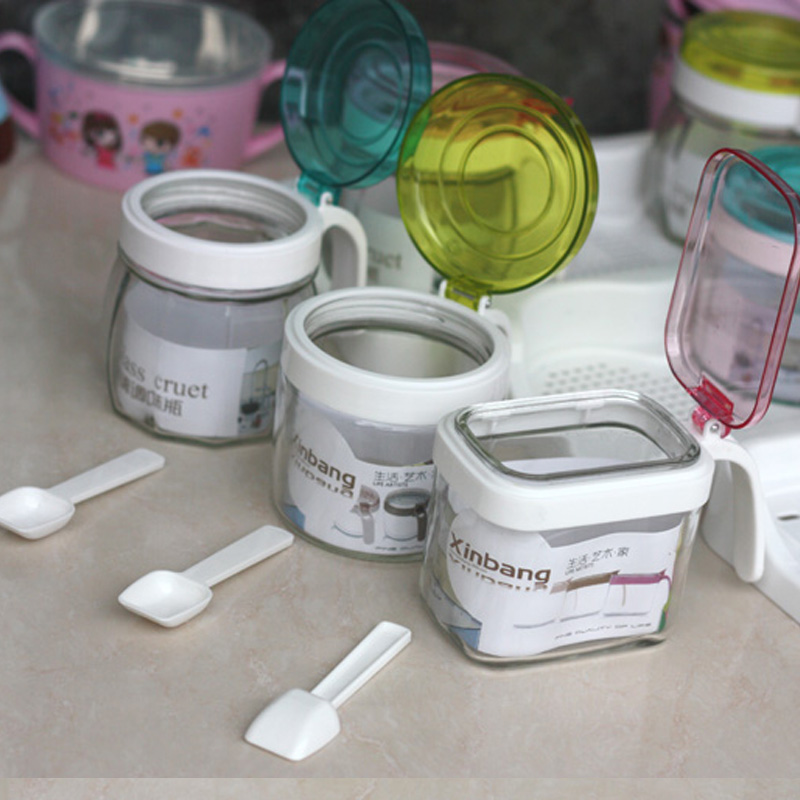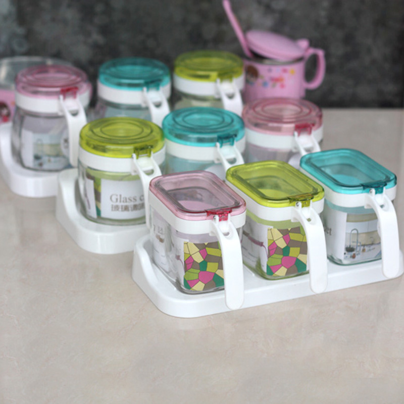 Kitchen glass sealing box set flavor box salt cans 3 pieces with spoon