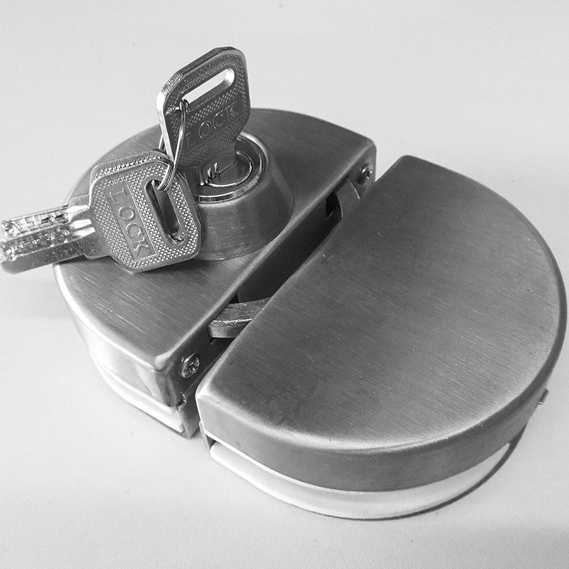 Shop company door glass lock stainless steel 8-12 cm glass door lock semi-circle double door single-sided outside unlock