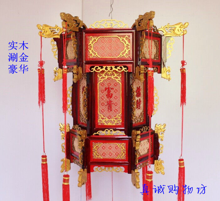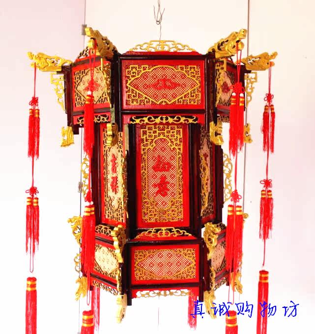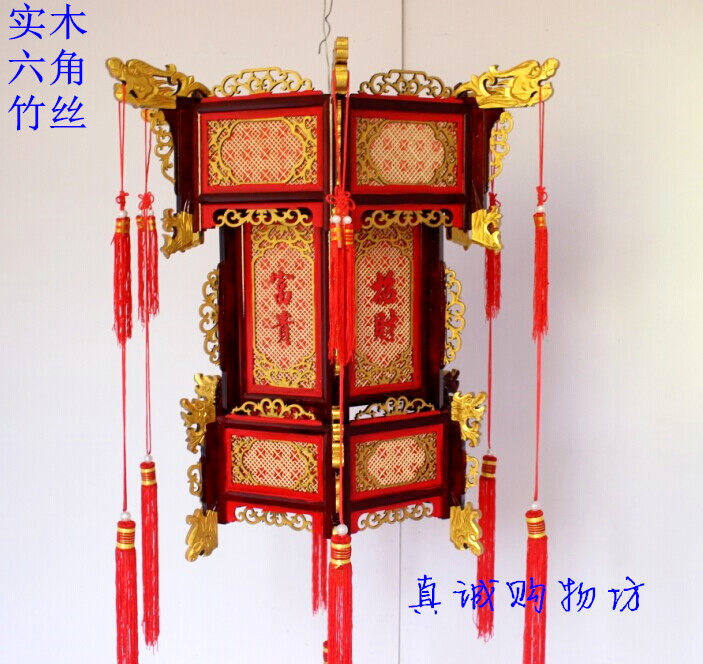 High-end Bamboo Silk Boiling Gold Hexagon Imitation Antique Luxury Palace Lamp Joyous Wood Red Lantern East Yang Wood Carving lamp holder