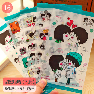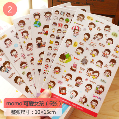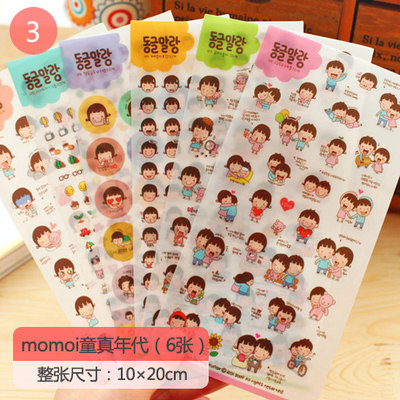 Colored round decoration applique with 1 mini-- love sticker (2 identical patterns) Small bear decorative sticker (2 sheets) headscarf girl sticker (6 sheets) blue version minimalist life (6 sheets) small