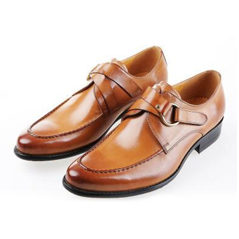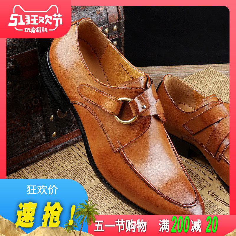 Horsebit buckle round buckle men's set feet leather pointed toe business casual British leather shoes yellow no shoe laces non-Chengdu