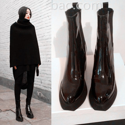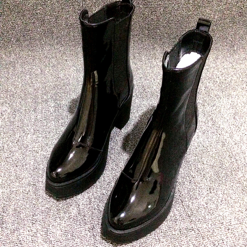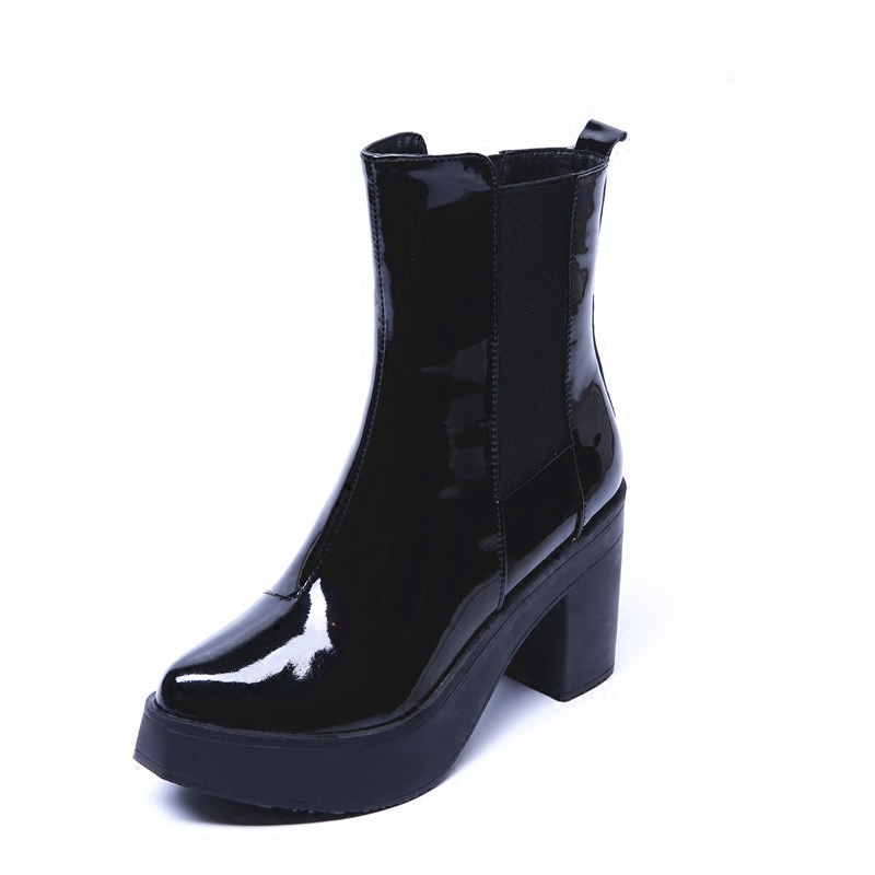 KAKY British boots women's 2021 autumn booties women's thick-heeled pointed leather thick-soled high-heeled patent Leather Martin boots women