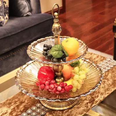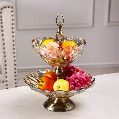 European-style glass double-layer fruit plate Modern creative fruit plate dried fruit plate household living room coffee table decoration luxury fruit basin