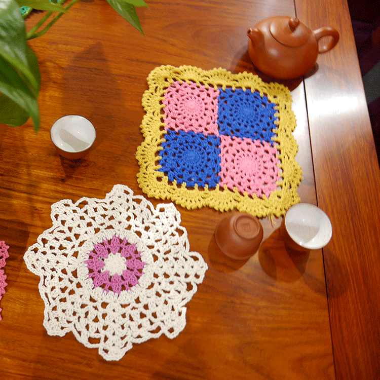 I love my home handmade crochet hook flower cotton lace hollow pastoral country placemat decorative mat color matching white