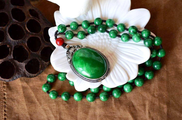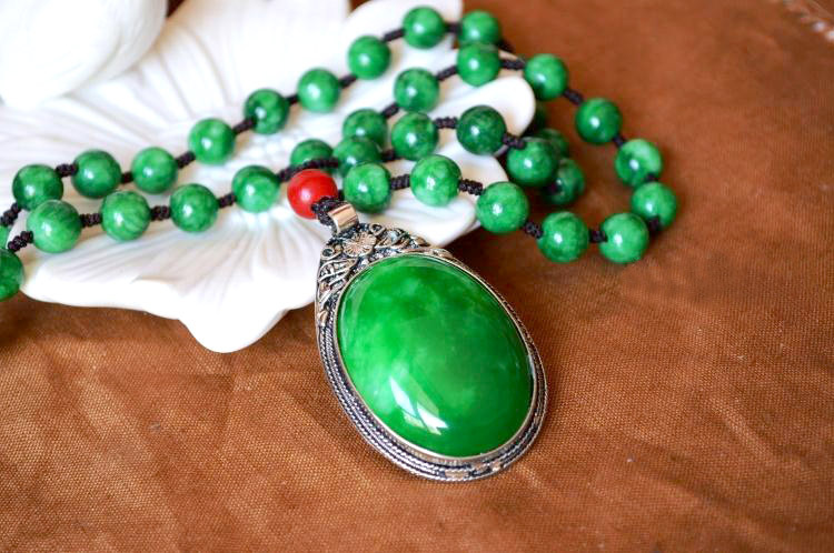 Full Green Ice Glutinous Seed Dry Green Jade Emerald Color Necklace Wool necklace pendant male and female Yupei jade pendant decorated pendant