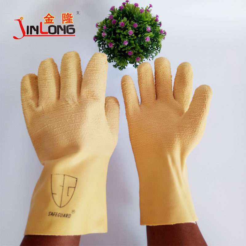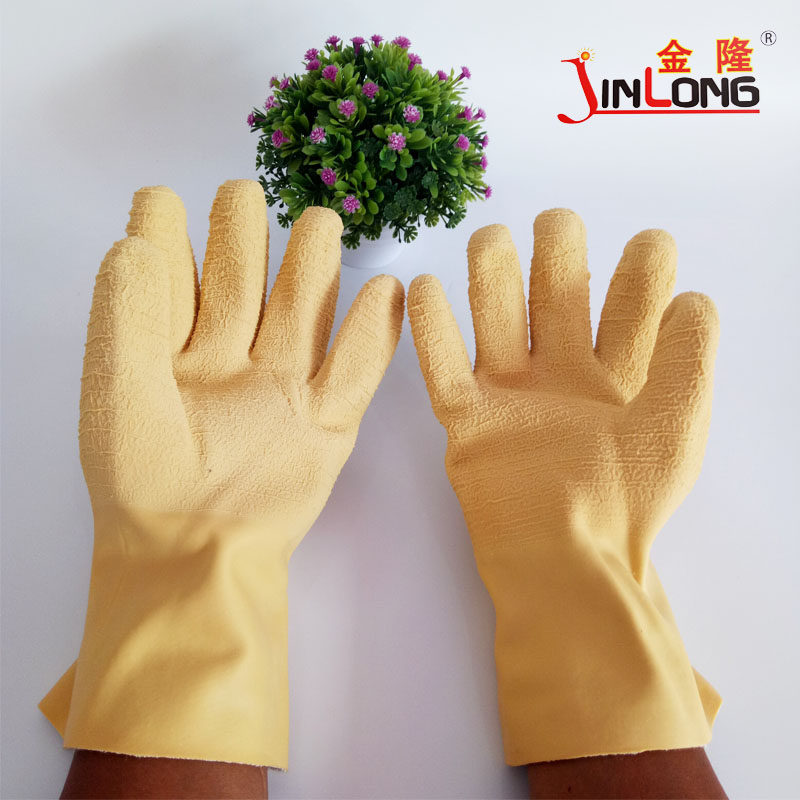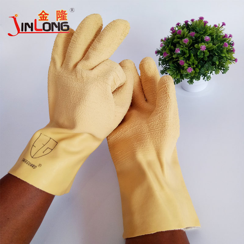 10 pairs of Shanghai johnson knitted velvet long tube tripe latex wrinkled waterproof warm wear-resistant labor insurance gloves
