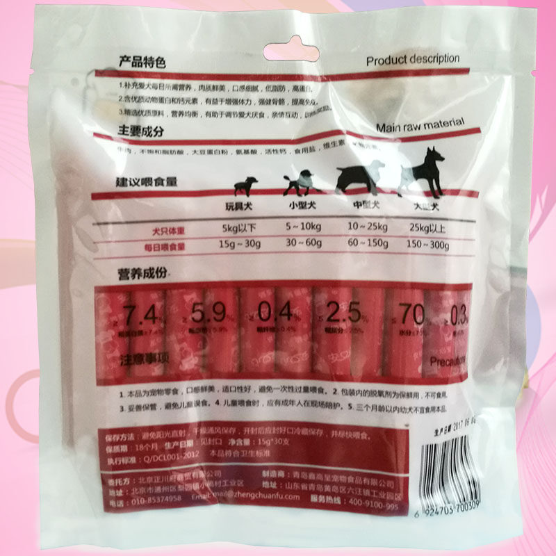 Peace of mind pet sausage beef cat and dog jerky can be mixed with dog food reward snacks ham sausage 30