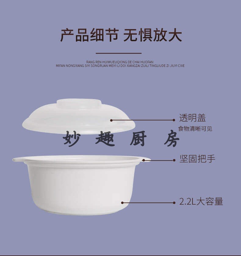 Tea Flowers 2 2L Large Microwave Heating Saucepan Domestic Microwave Special Heating Bowl Soup Pan Soup Bowl Blister Noodles Bowl 2707