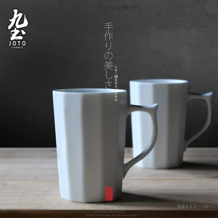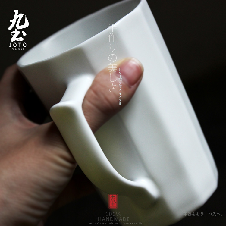 Jiuitujingdezhen ceramic cup with handle simple office white hand flush coffee cup ceramic lovers' cup water cup-Taobao