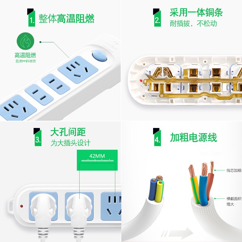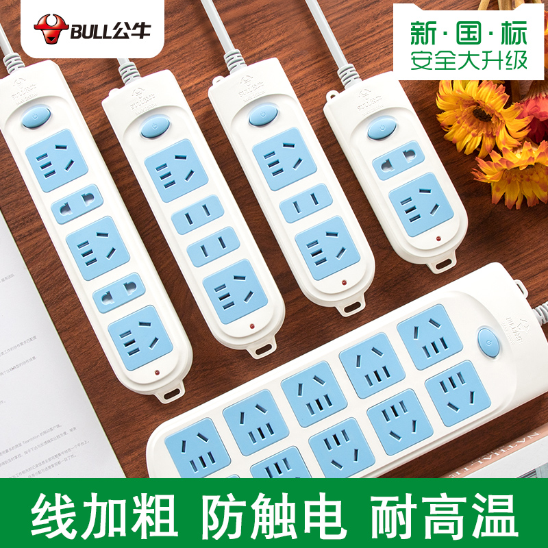 Bull socket panel multi-position plug row multi-function household plug and drag wire board extended row plug dormitory plug board with wire
