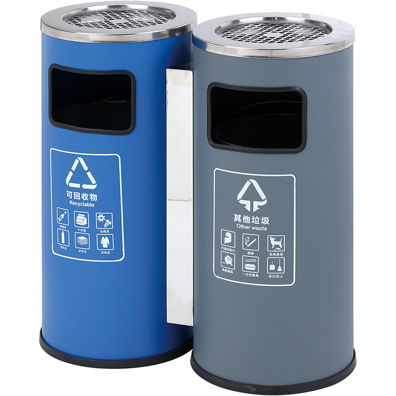 Acrylic Interior Round Two Sorting Bins Fruit Leather Case School Airport Hall Subway Station Stainless Steel