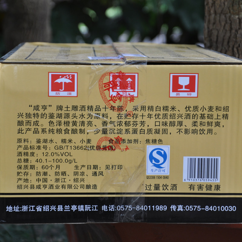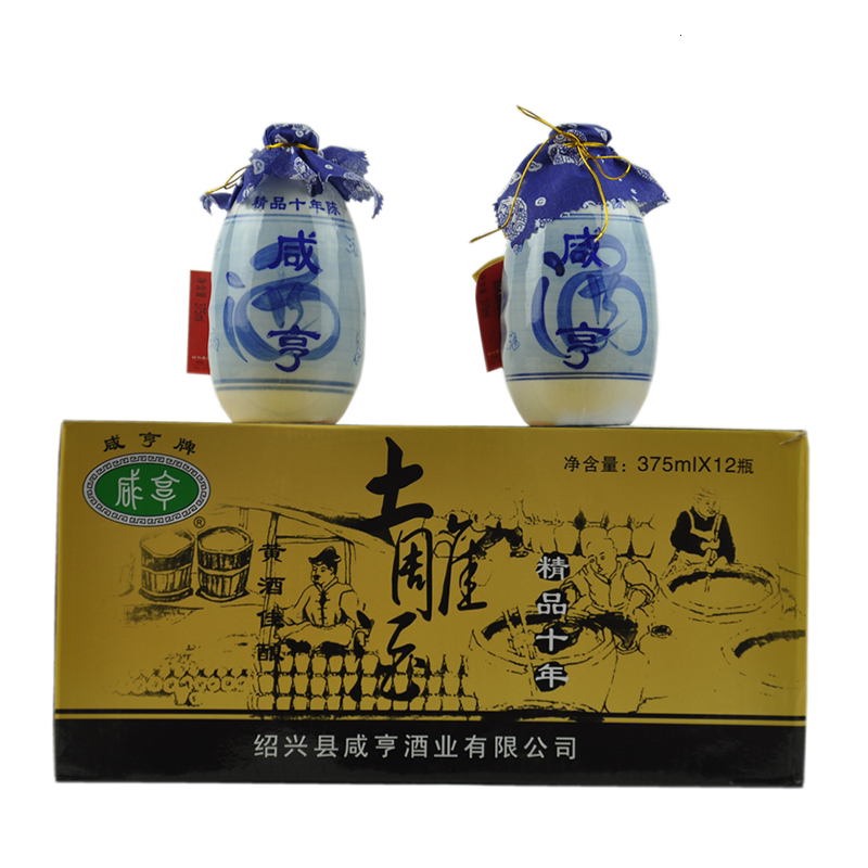Shaoxing rice wine Xianheng ten-year-old earthen carving wine 375ml*12 bottles of semi-sweet boxed wine glutinous rice wine