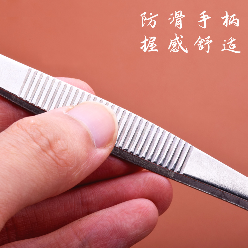 Stainless steel straight tweezers Curved tweezers thickened and lengthened accessories Round toe pointed clip anti-slip toothed alcohol cotton ball