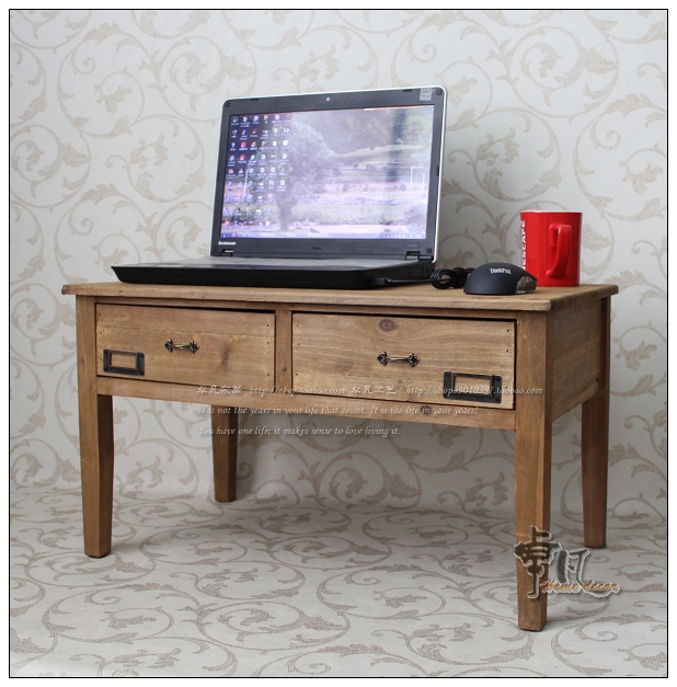 Retro nostalgic solid wood small table Japanese-style laptop computer table home balcony bay window wooden table low tea table with drawers