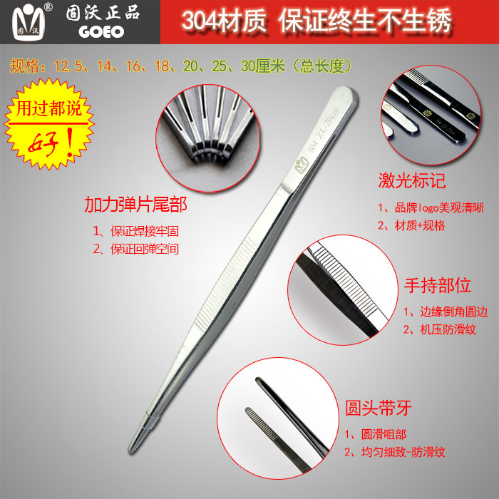 Guwo 304 thickened and hardened stainless steel medical pliers tweezers straight round head clamping tool meaty scorpion pinch