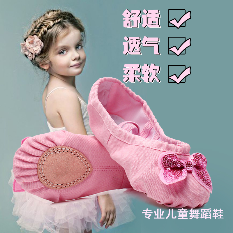 Butterfly Knots Toddler Child Dance Shoes Soft-bottom Ballet Shoes Girl Dancing Shoes Pink Practicing Shoe Cat Claw Shoes Performance