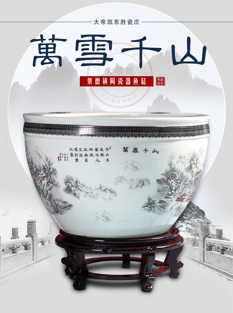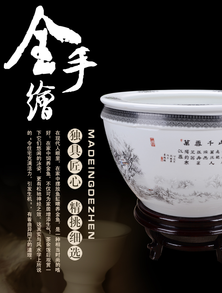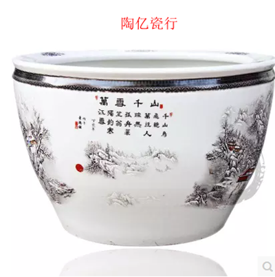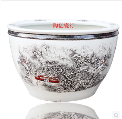 Jingdezhen small 42cm ceramic tank snow scenery large Koi cylinder creative high temperature porcelain pot