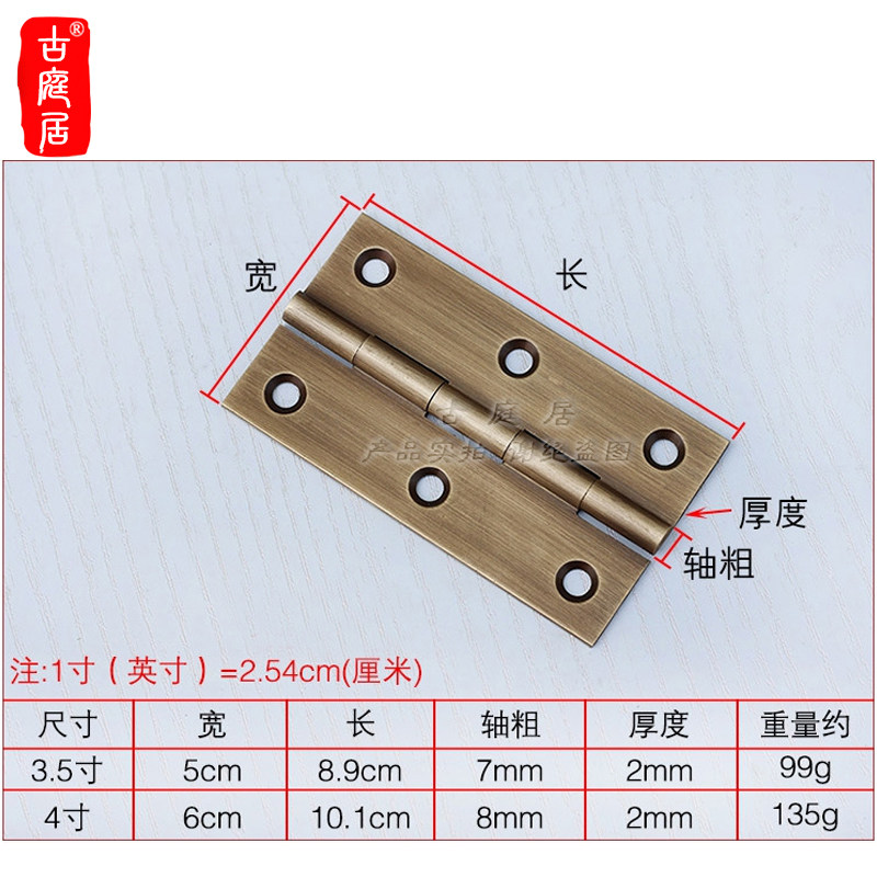 Pure bronze imitation ancient hinge room Chinese style gate hinge old wood doors and windows common folding page yellow ancient bronze flat open dark hinge