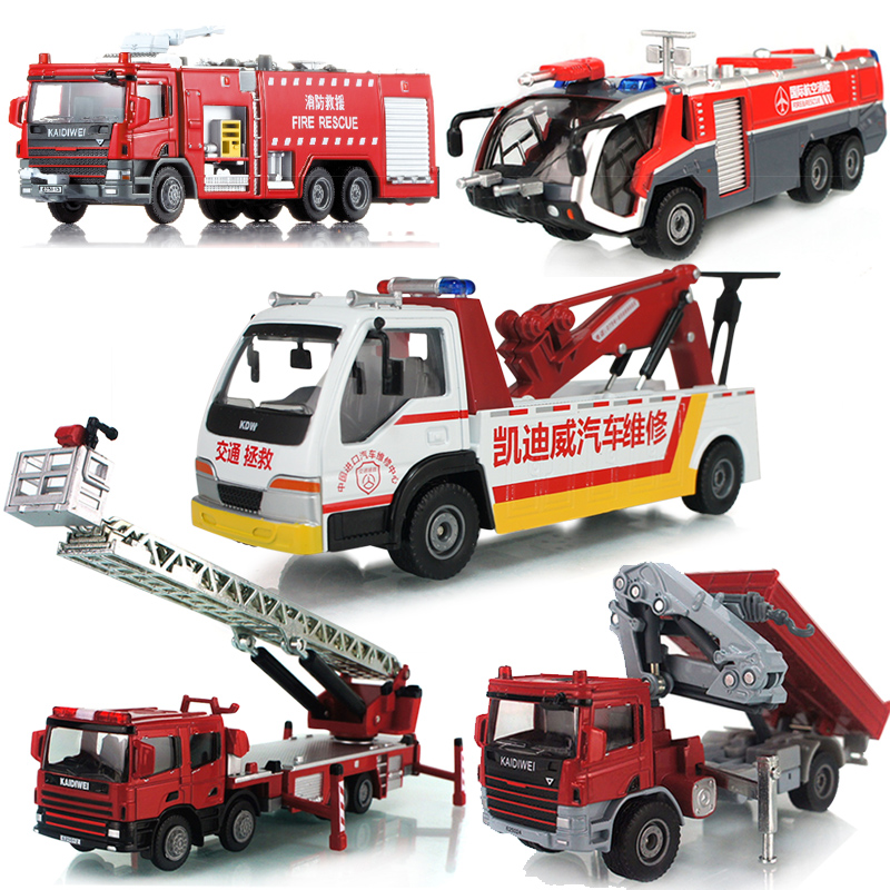 Kediway Five Only Loaded Alloy Rescue Car Hood Mounted Fire Truck Stroller Crane Truck Simulation Car Model Children's Toys