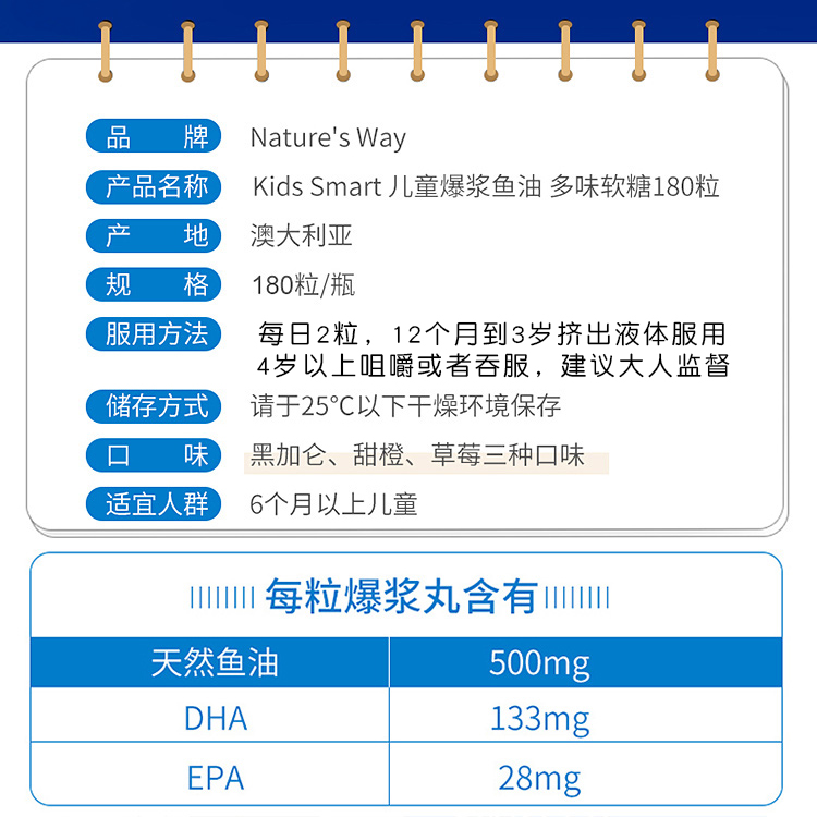 Australia imported Naturersquo s Way Children's Deep Sea fish oil softgels 180 omega3