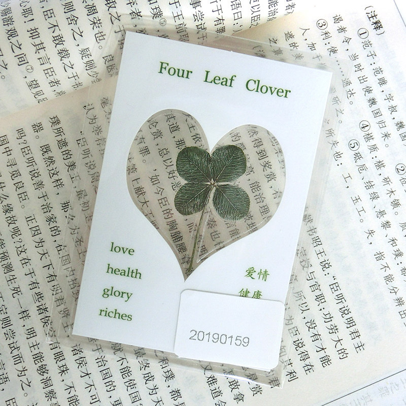 Wild four-leaf clover clover specimen bookmark card birthday Tanabata Valentine's Day gift confession for boyfriend and girlfriend