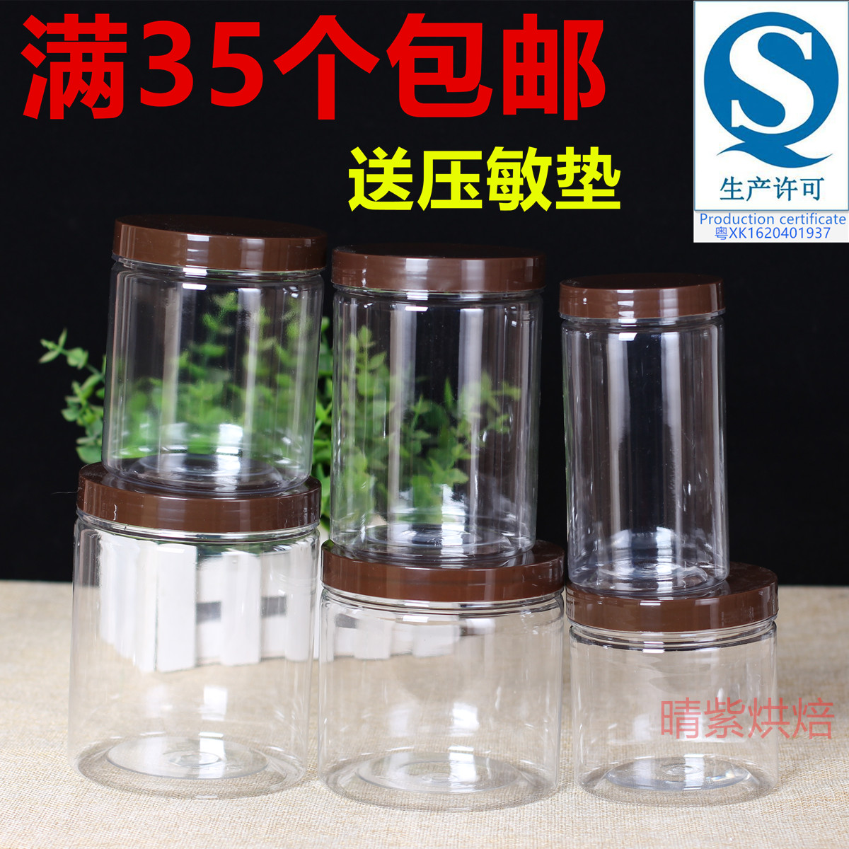 Transparent plastic food packaging bottle red sugar nut tea medicine baking sealed round biscuit box storage jar