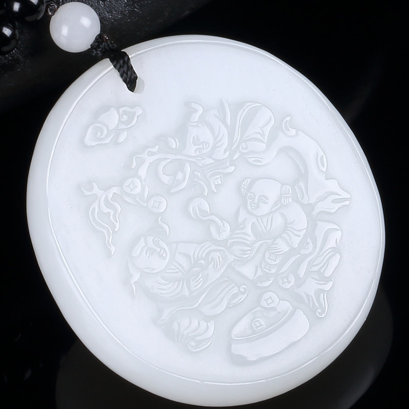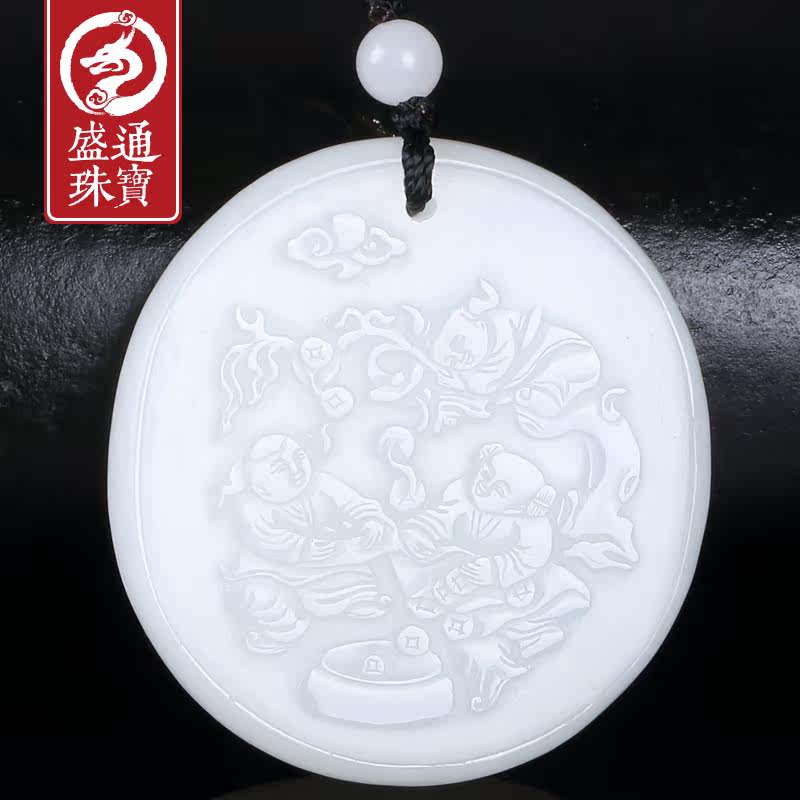 Shengtong jewels and Tian jade pendant sheep fat white jade money tree round jade pendant rocking money tree jade pendant solitary