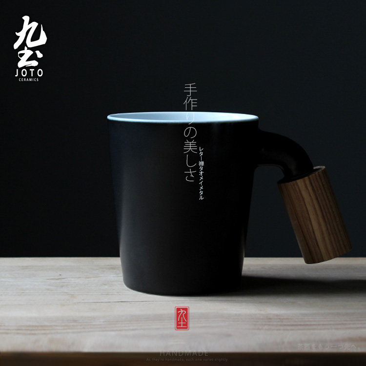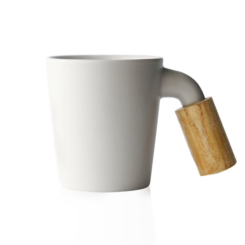 Nine-earth coffee cup minimalist Eurostyle Mark Cup creative couple men and women pair of cup with wood cover spoon white ceramic water glass-Taobao