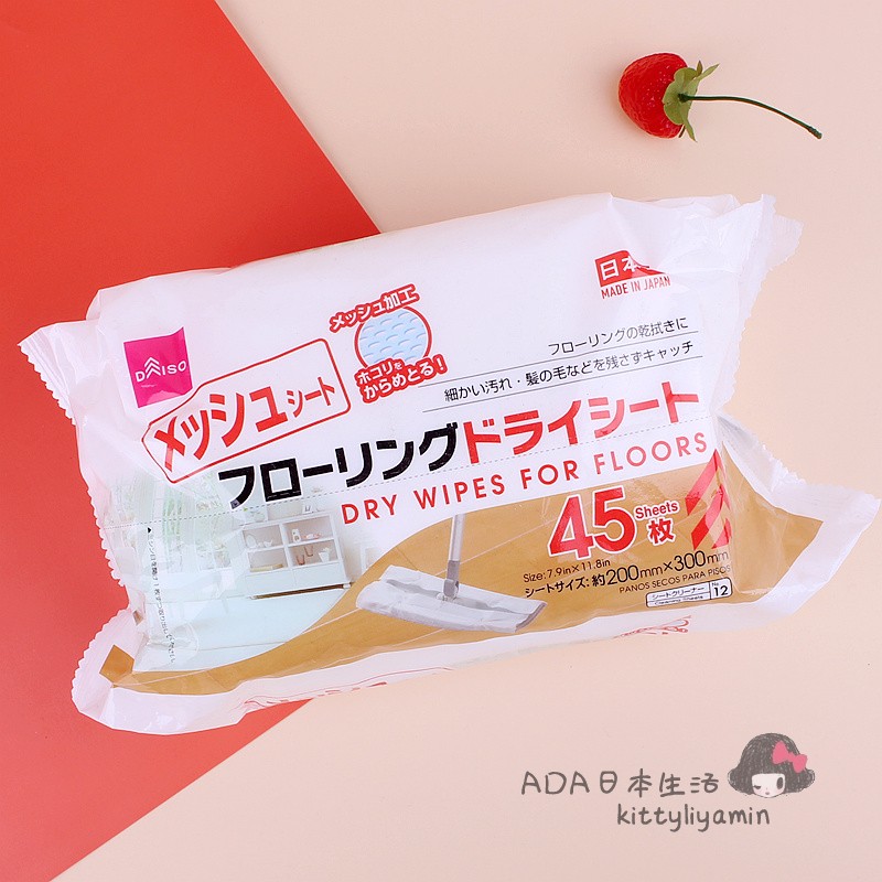Japan's big innovation DAISO floor dry wipes dust suction paper static dust removal paper disposable floor towels 45 sheets of Japanese