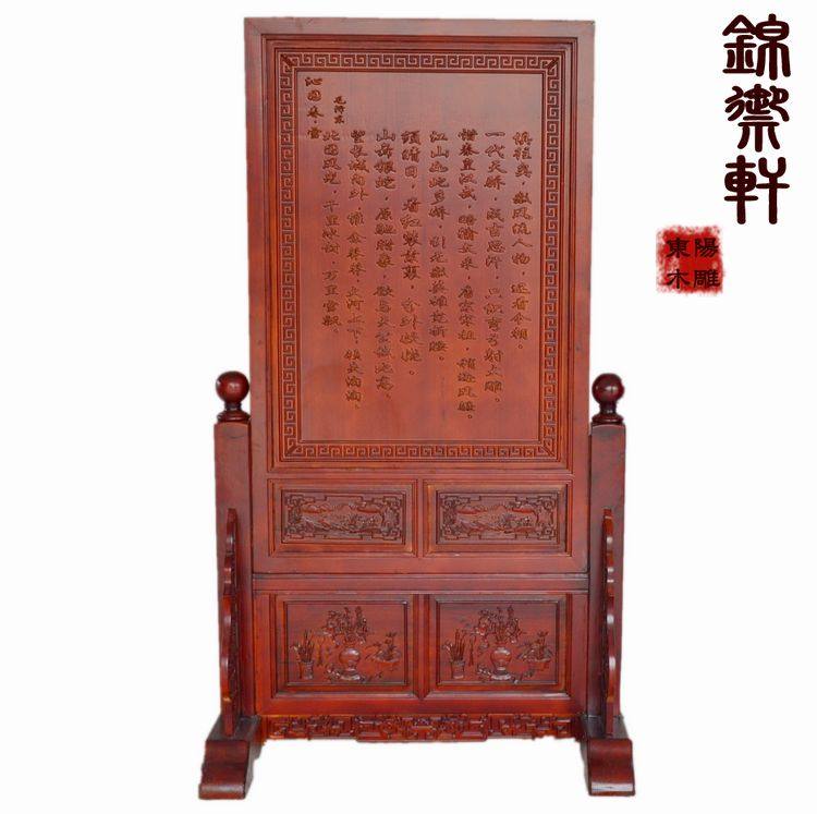 Dongyang wood carved floor screen landscape Jiangnan seat screen Solid wood antique Chinese carved partition entrance ornaments