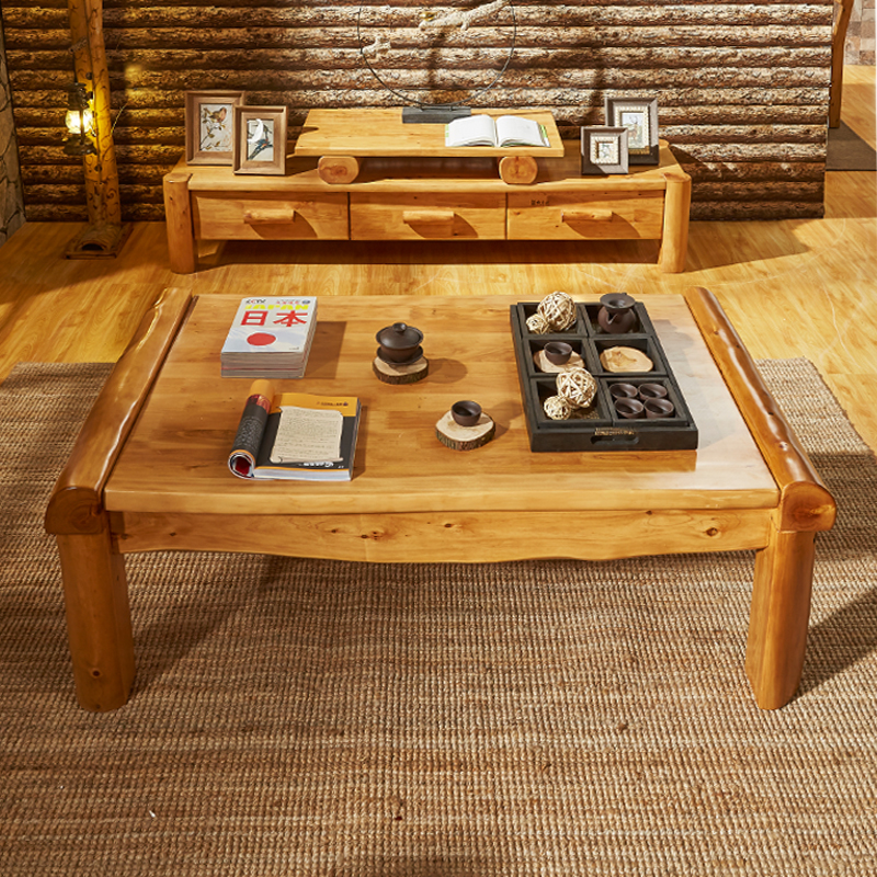 All solid wood coffee table Antique log small tea table Living room solid wood furniture cypress simple corner guard original ecological coffee table