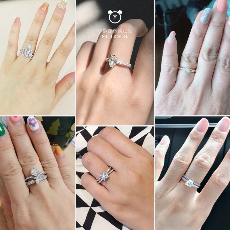 GIA heart-shaped water drop Princess square shaped naked diamond diamond ring 1 carat special spot Bear home jewelry customization