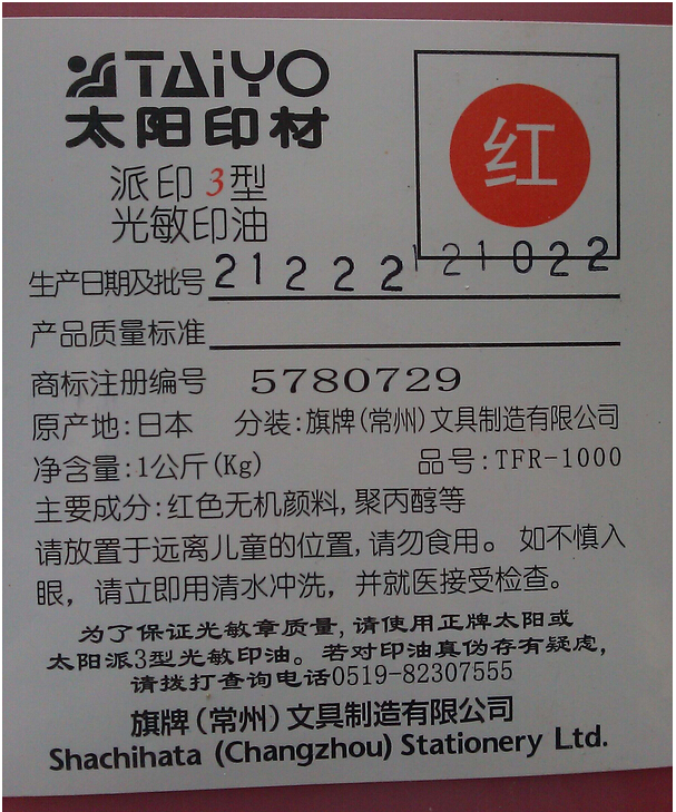 Red sun card photosensitive printing oil Sun oil 1 kg installed large bottle photosensitive printing oil Pie print 3 type-Taobao