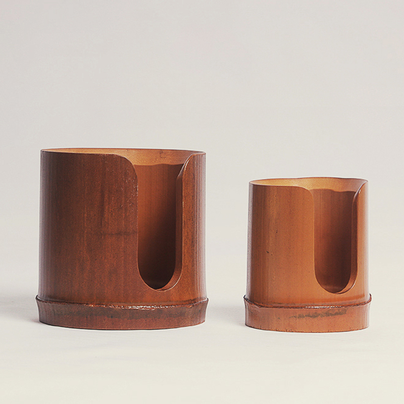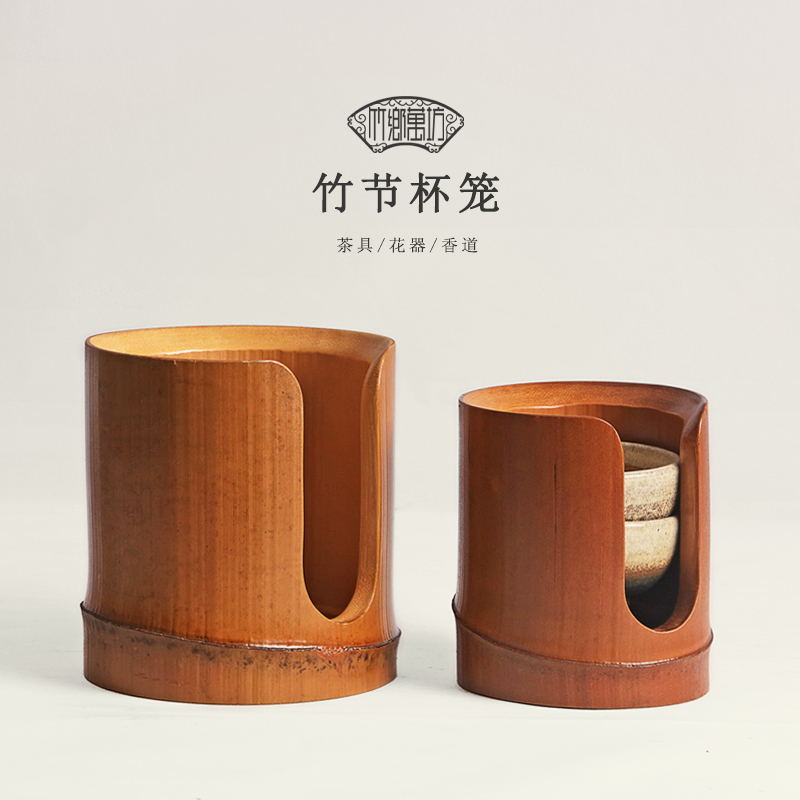 Japanese-style simple carbonized bamboo cup cage vintage zen bamboo cup basket Antique cup rack Bamboo cup tube Bamboo storage tube