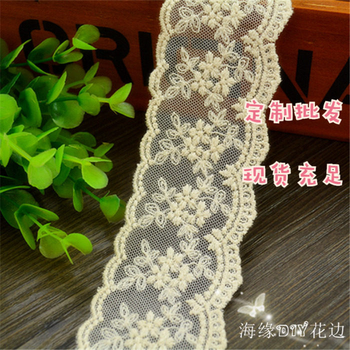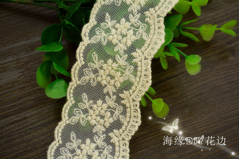 Off-white double-sided mesh embroidery lace accessories handmade diy clothing cuff skirt collar accessories 4cm