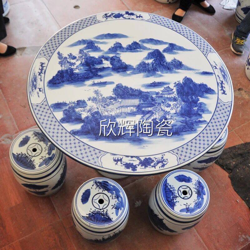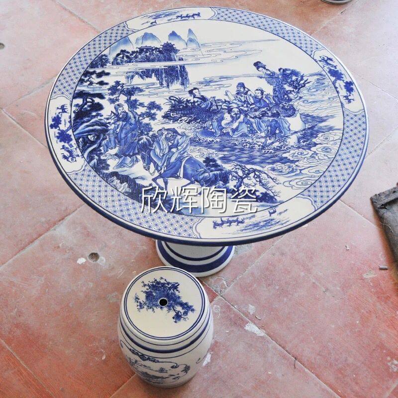 A single porcelain stool "Blue and White Landscape" A table of four stools "Hundred Zi Tu" A table of four stools "Seven Sages of the Bamboo Forest" A table of four stools "Chessboard" A table of four stools "Eight Immortals Crossing the Sea" A table of four stools "Lotus Branch Lotus" A table of four stools "Blue and Flower Lotus Pond" A table of four stools