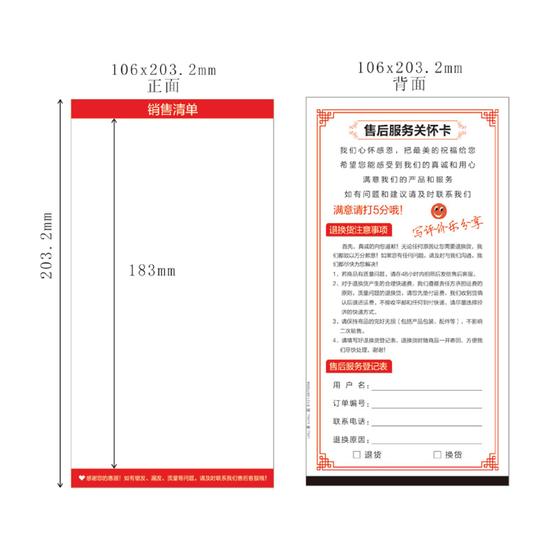 90 gr THERMAL SHIPPING BILL (After Sales Service Card)