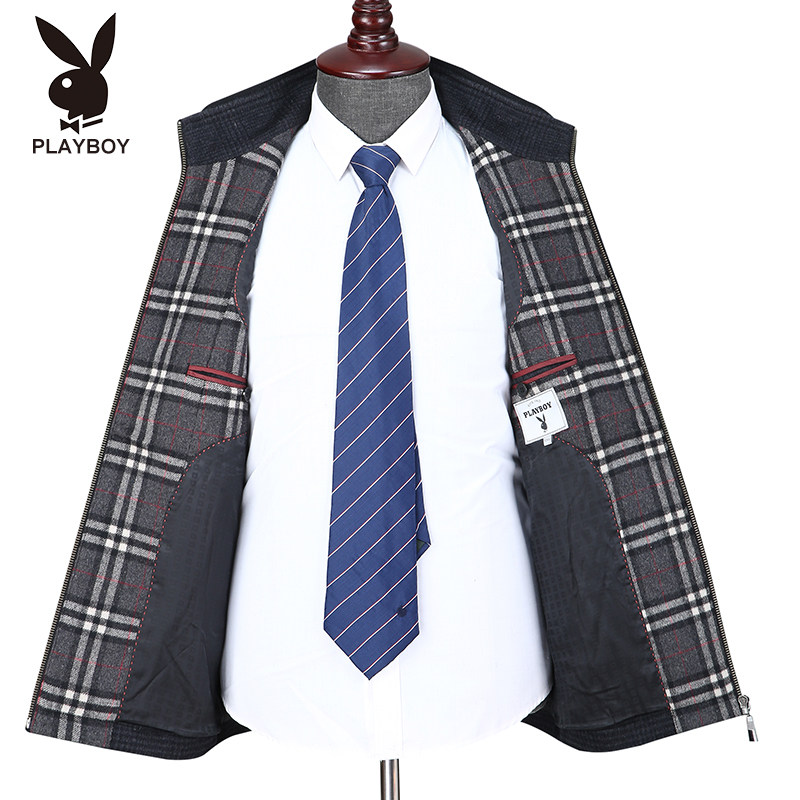 Playboy wool jacket men's stand collar middle aged and elderly business casual oversize spring and autumn wool coat