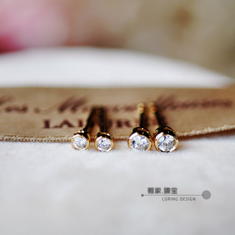"Weijia" starlight TAS* KI the same diamond bag inlaid with 3 points 6 sorting 18K gold ear nail single price