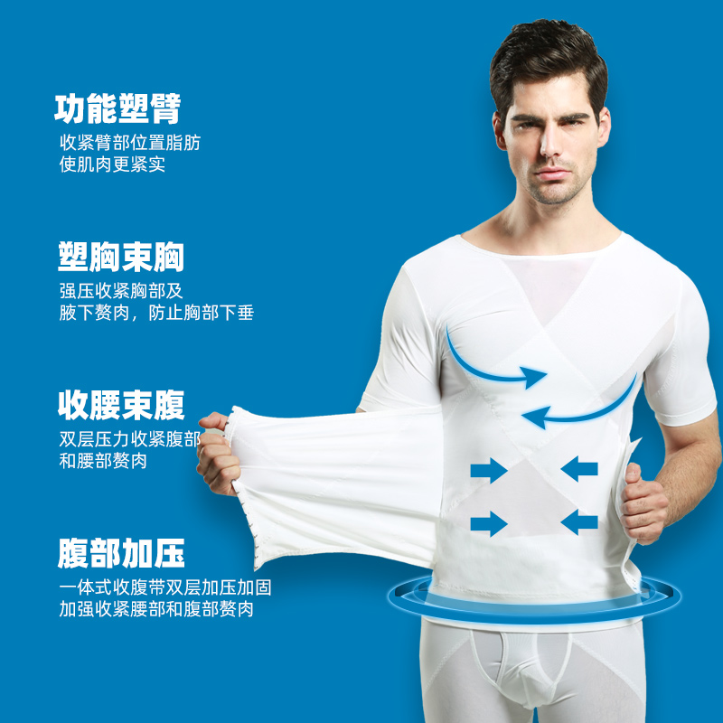 INSMANX Men's belly shapewear corset waist shaping breathable incognito short-sleeved base tight underwear