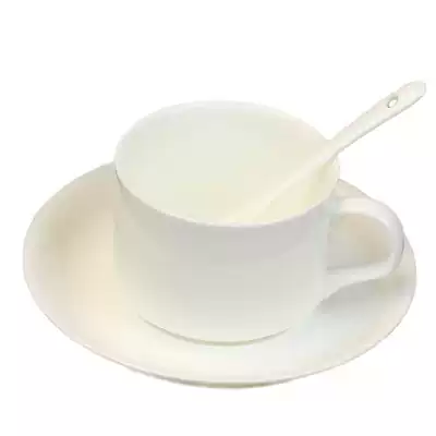 Food substitute European pure white bone china coffee cup and saucer set simple afternoon tea cup with spoon can be customized with logo