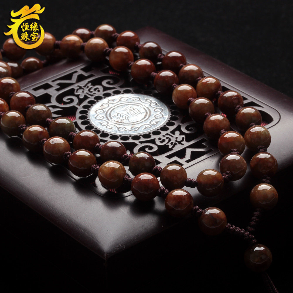 Natural Jadeite A Jade Bead Necklace Men's Handmade Jade Bead Lanyard Men's Women's High-end Sweater Chain